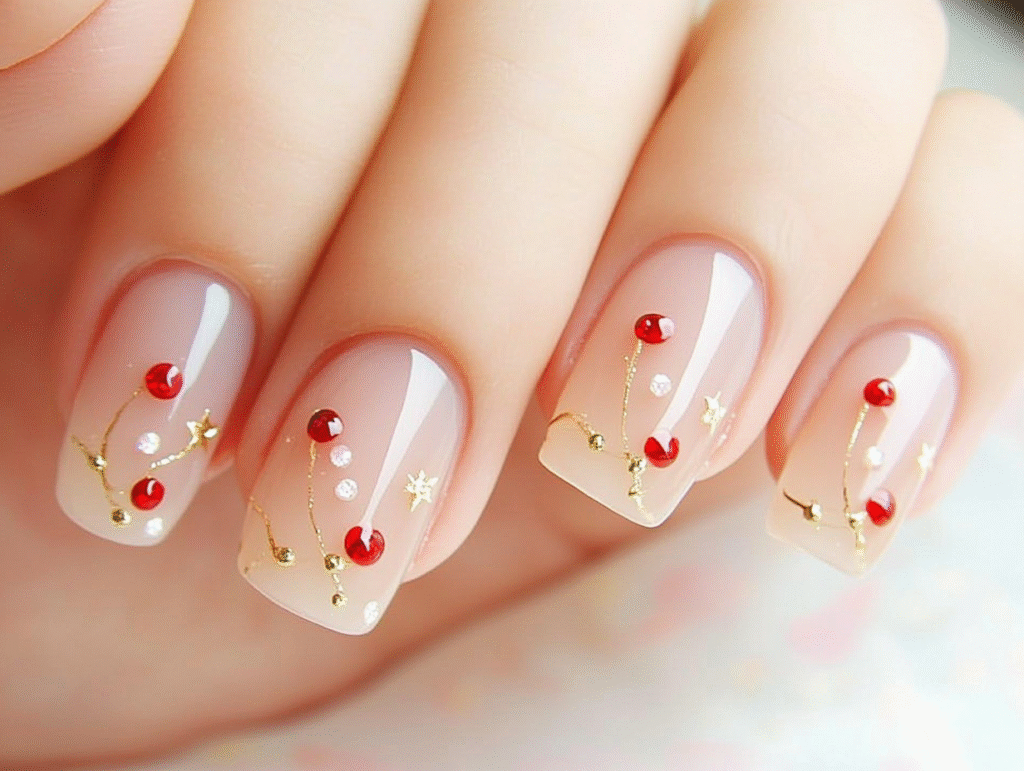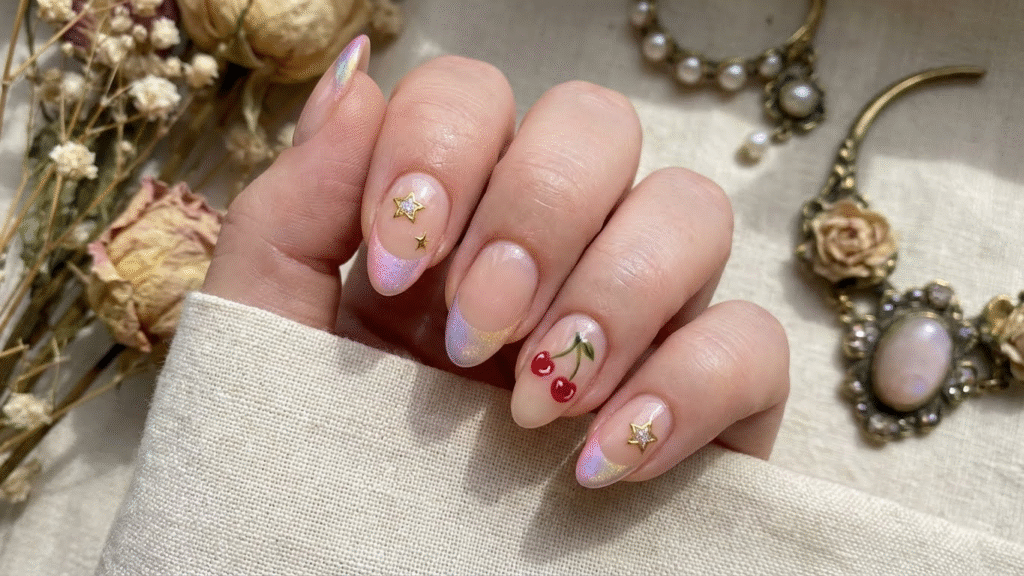 Some try tiny cherry accents or gold-framed stars on select nails. These details create interest without losing the manicure’s elegant appeal. Another popular option is using cool-toned tips or even subtle snowflakes in winter for a seasonal touch.