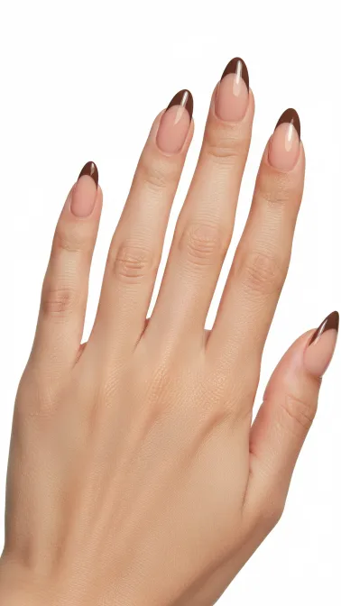Think of this look as a mocha French tip with a chocolatey twist. The soft brown tips add warmth and style without overpowering the nail.