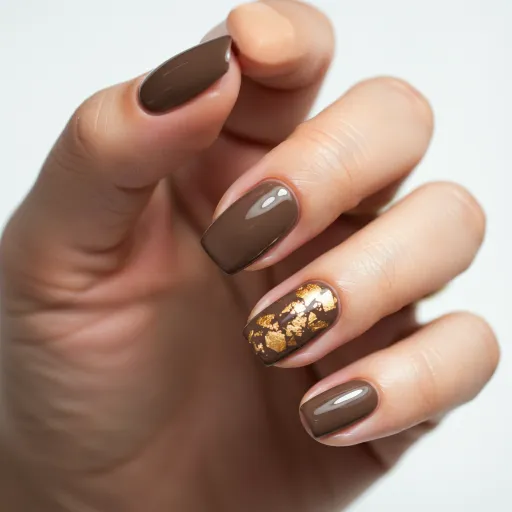 Adding tiny gold details gives mocha nails a chic, glam finish. It’s a simple upgrade that looks expensive without much time or skill.