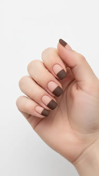 This look gives your mocha nails a velvety, airbrushed feel. The matte finish adds a modern twist to the classic brown shade. Perfect for minimalists who love soft, muted tones.