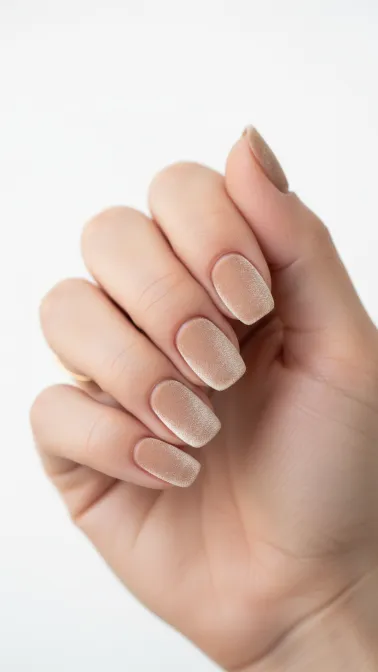 This style highlights a light mocha mousse shade with a plush, airy velvet finish. It has a clean, minimalist vibe that feels calm and cozy. Perfect if you want a soft, simple manicure that still looks polished.