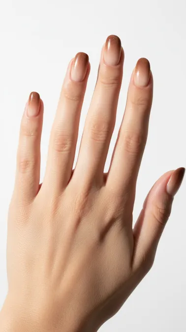 This look blends mocha tones into a soft gradient with a velvety glow. It feels dreamy, smooth, and perfect for anyone who loves artistic but wearable nail designs. The ombre paired with velvet texture gives a chic, high-end finish.