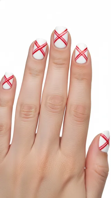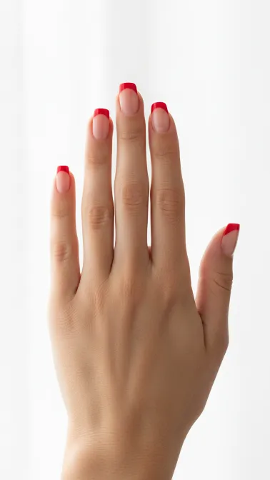 A Christmas twist on the classic French tip. Bright red tips feel festive and crisp. Perfect for quick, clean holiday nails.