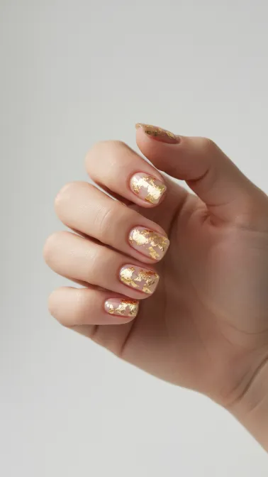 11. 🕯️ Simple Nude Nails with Gold Foil