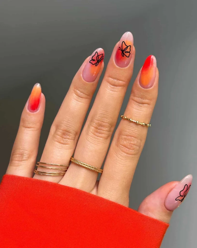 Sunset Gradient Butterfly Nails
