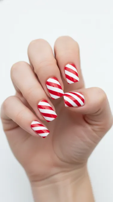 Sweeten your nails with playful red-and-white stripes inspired by candy canes. Fun, festive, and super easy to recreate in minutes. Perfect for beginners looking for a classic holiday vibe.