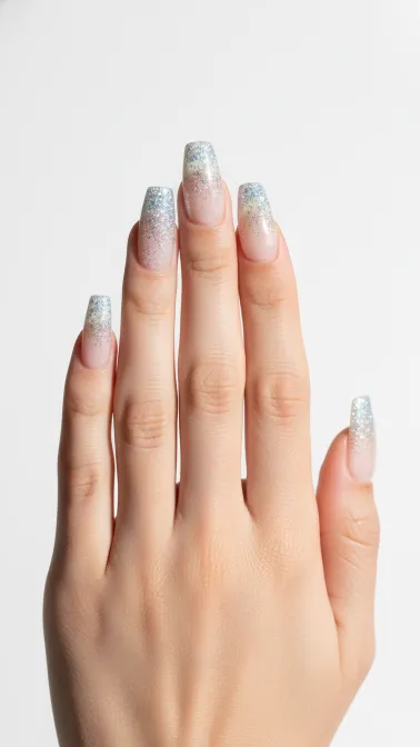 Add sparkle to your nails with a glitter ombre effect. This dreamy, festive design is perfect for holiday parties and New Year’s celebrations.