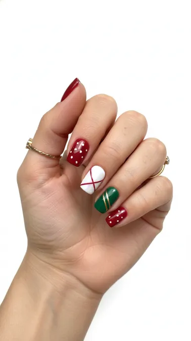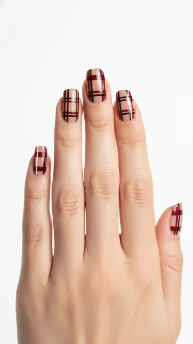 Stylish and trendy, plaid nails give a cozy holiday vibe. Great for those who love patterns but want a quick DIY look.
