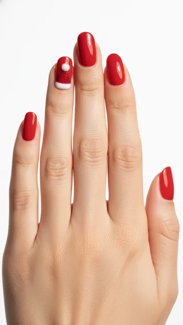 Celebrate Christmas with a cute Santa hat on an accent nail while keeping other nails simple. Fun, festive, and beginner-friendly.