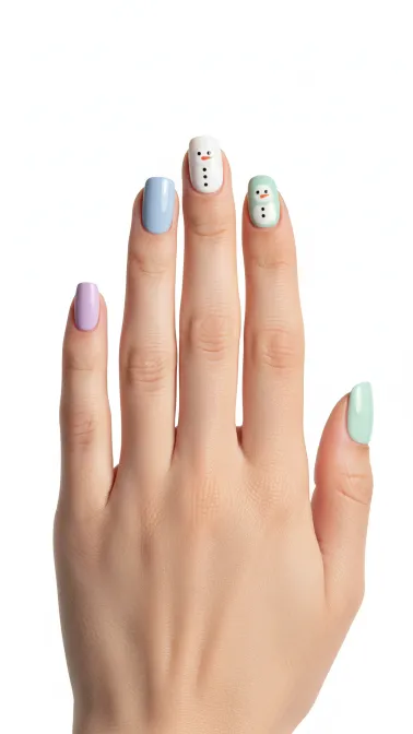 Bring winter cheer with tiny snowmen on your nails. Cute, festive, and ideal for holiday lovers of all skill levels.