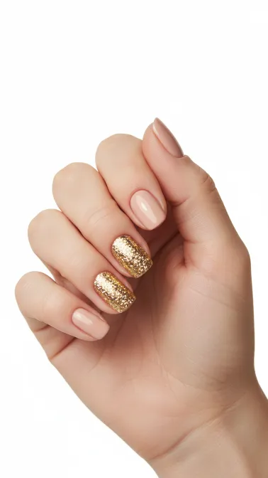 💅 Glittery Gold Accent Nails