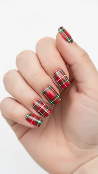 💅 Plaid Christmas Nails