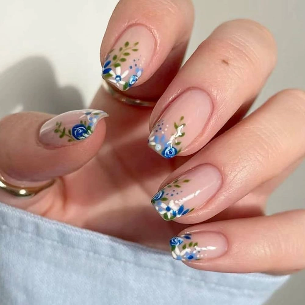 Blue Blossom French Tips