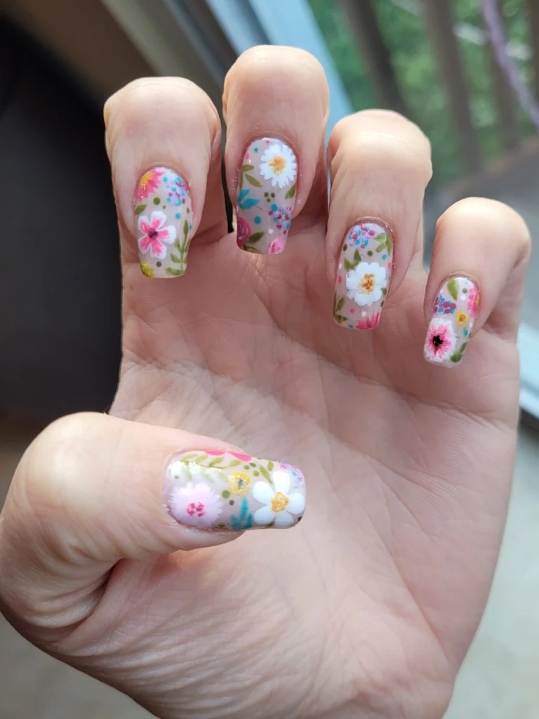 With proper prep and a good top coat, floral nail designs can last up to one or two weeks without chipping.