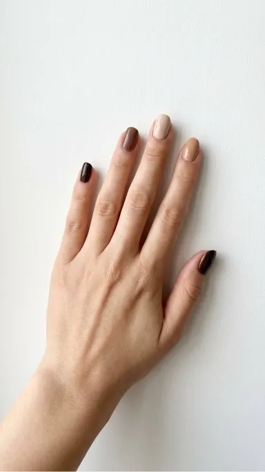This look plays with different shades of mocha brown on each nail. It feels creative but still polished, making it perfect for neutral nail lovers who want something fresh.
