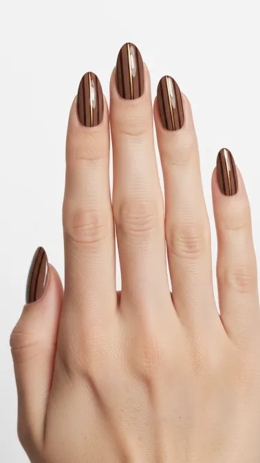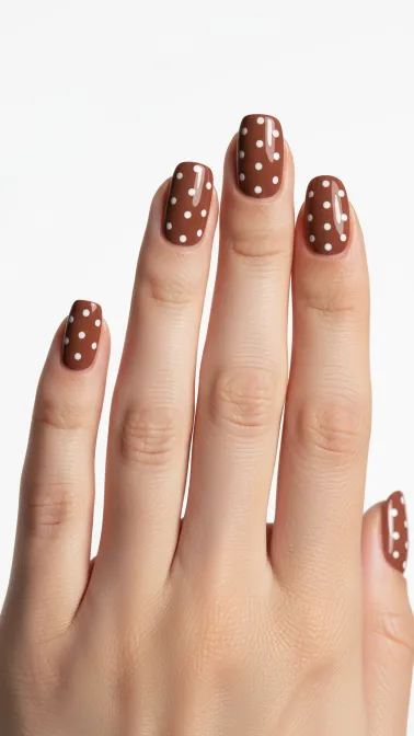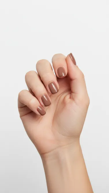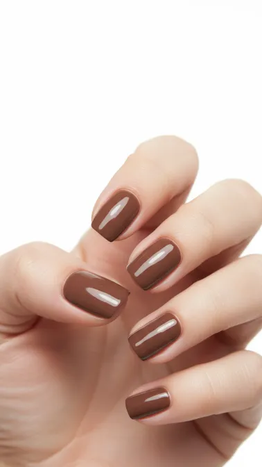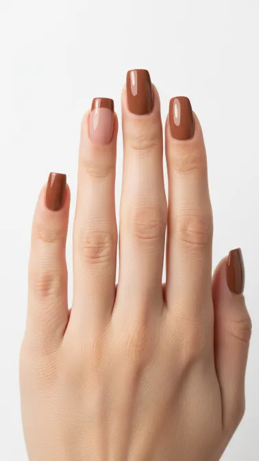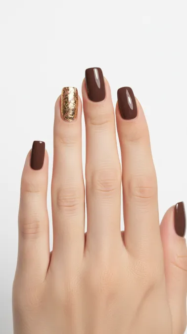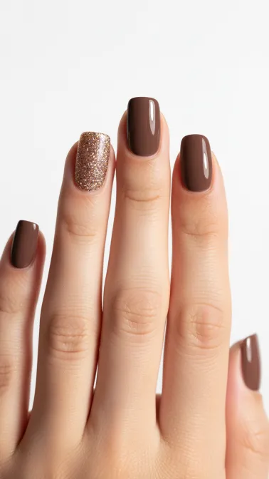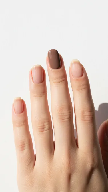 A single mocha brown accent nail on a neutral or nude base. This is perfect for busy days or those who want a minimal but stylish manicure.