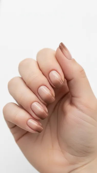 A soft gradient from light to deep mocha brown creates a sophisticated ombre effect. This trendy design is perfect for anyone who loves subtle elegance with a modern twist.