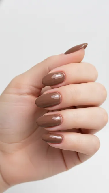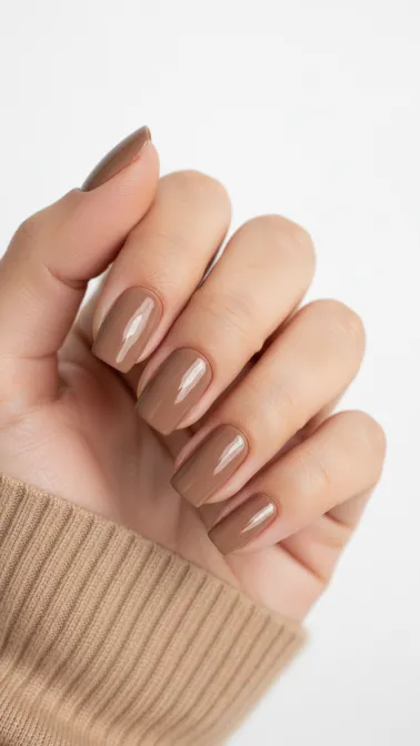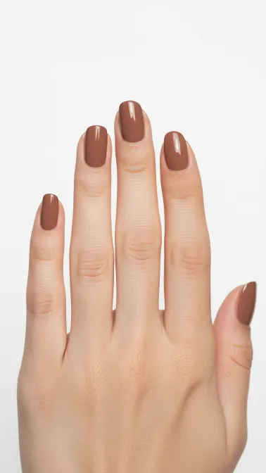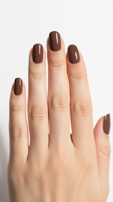 💅 Short Glossy Mocha Nails for Everyday Wear