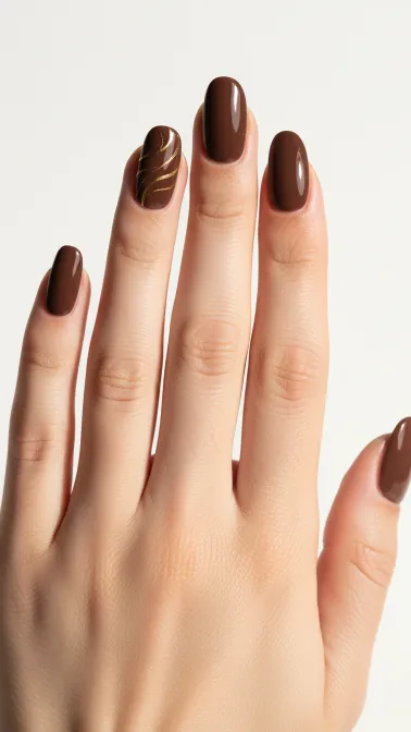 This look adds a touch of gold shimmer over the mocha base, giving your nails a warm, glowing finish. It’s festive, elegant, and great for holidays or special nights. The gold blends perfectly with mocha tones.