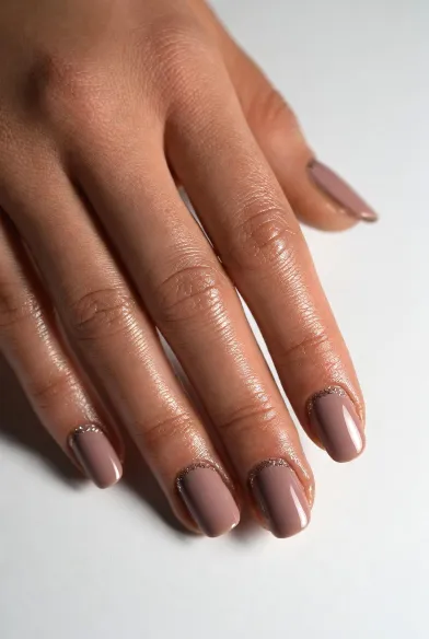 Glitter placed near the cuticle creates a clean and trendy look. This design is popular because it looks salon-style with minimal work. Great for subtle Valentine nail ideas.