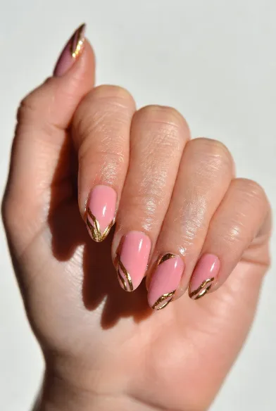 Soft pink or nude nails with gold details feel classy and romantic. This design is trending because gold elevates even the simplest manicure. Great for elegant Valentine nails.