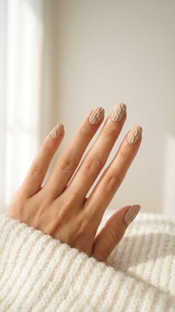 Beige sweater nails bring warmth and comfort to cold January days. The soft neutral tone feels cozy and trendy, making it a go-to winter manicure for everyday wear. It’s subtle but never boring.
