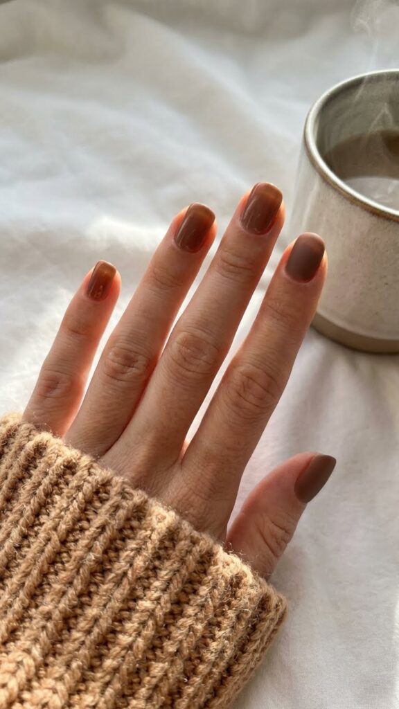 Brown nails feel grounded and winter-ready. This minimalist design keeps things simple while still looking stylish.