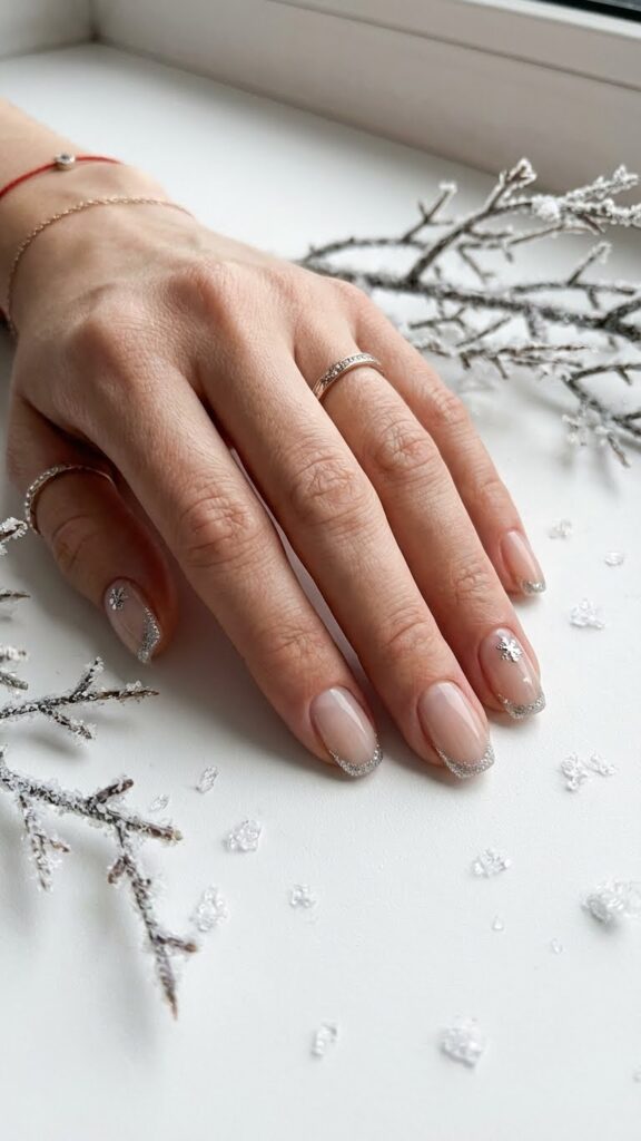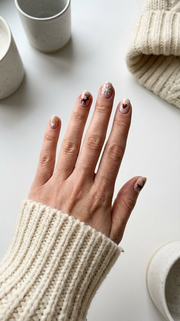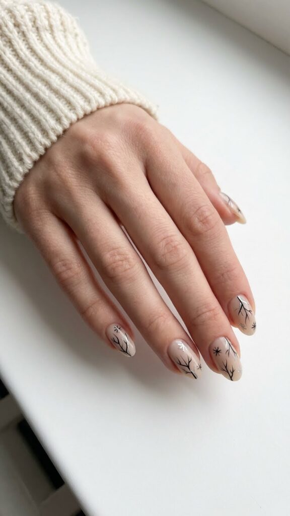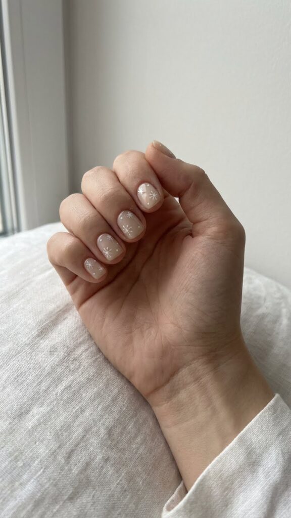 This look uses soft neutrals with tiny winter details. It feels playful but still clean, making it a great January nail idea that feels fresh all winter long.