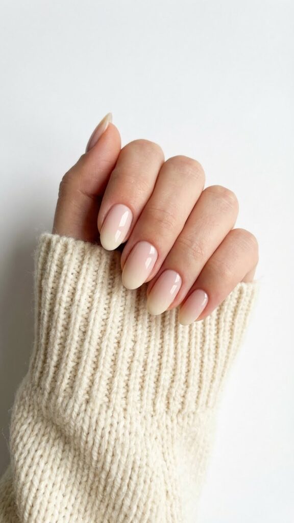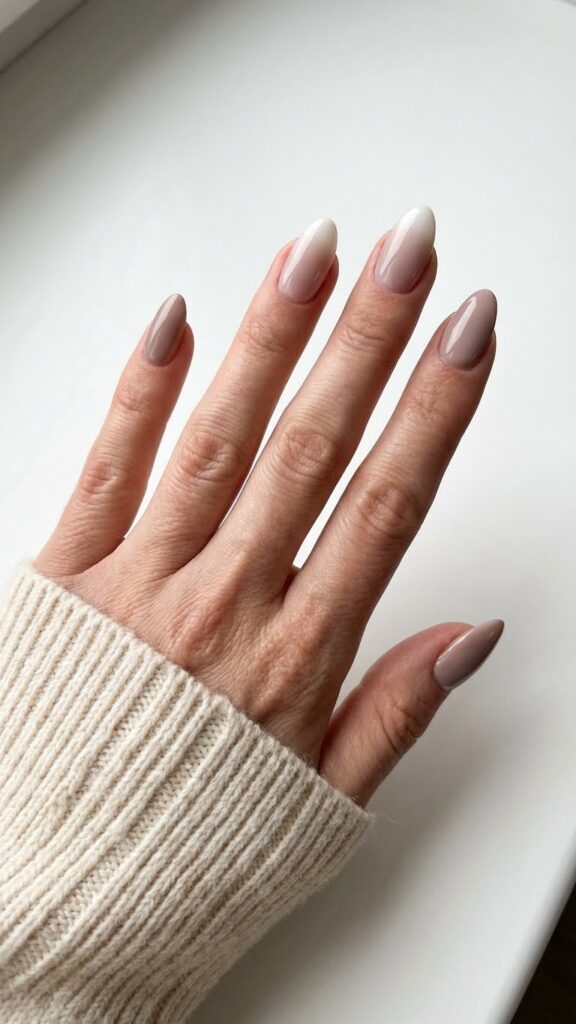 Neutral ombre nails blend softly from light to darker tones. They feel smooth, fresh, and perfect for winter.
