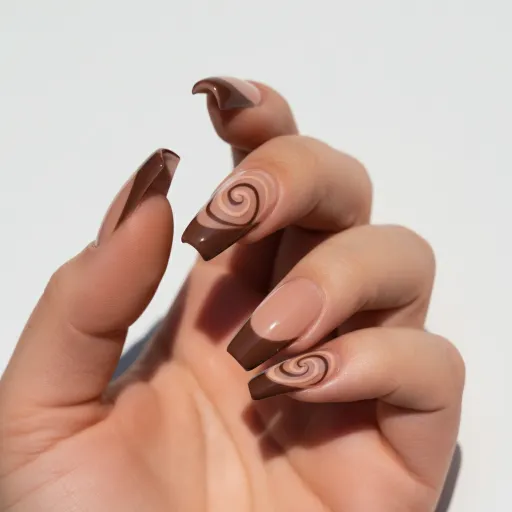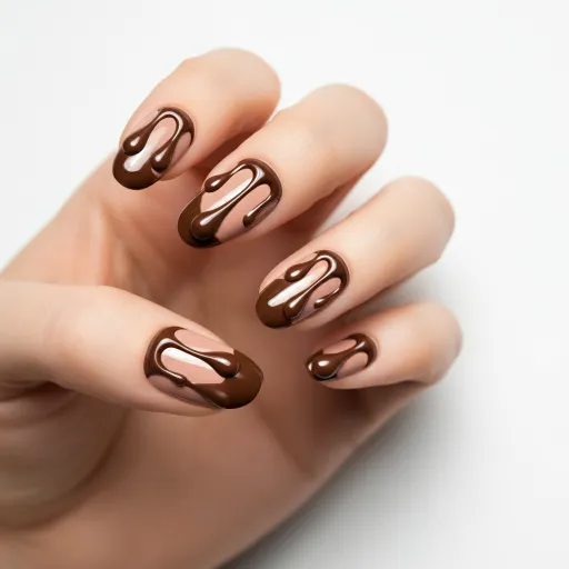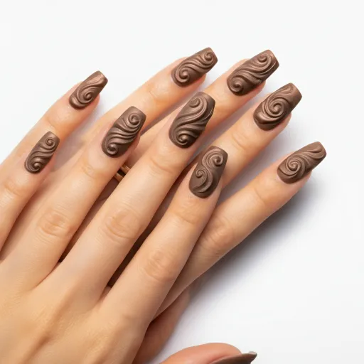 This design adds raised mocha swirls for a trendy 3D effect. It’s bold, textured, and perfect for anyone who loves expressive nail art.