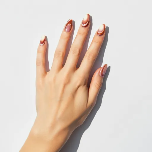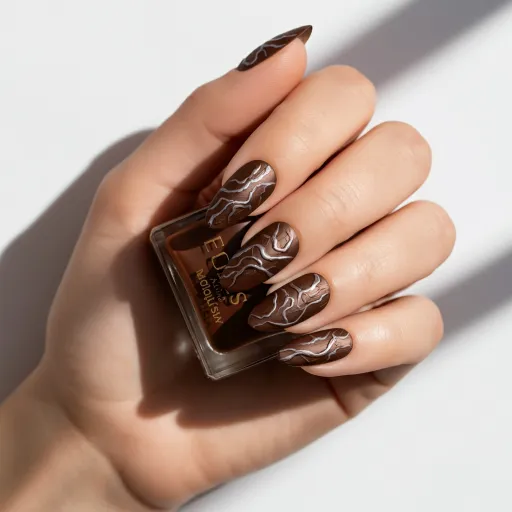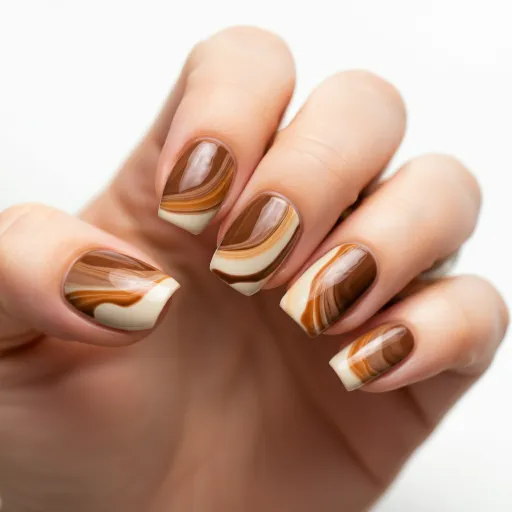 This style layers soft latte and mocha swirls for a dreamy, blended design. The flowing lines look artistic but are easy to recreate at home. It’s perfect for anyone who wants a trendy, latte-inspired manicure.