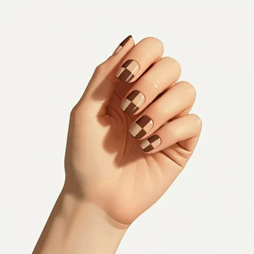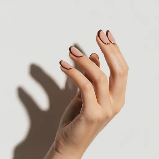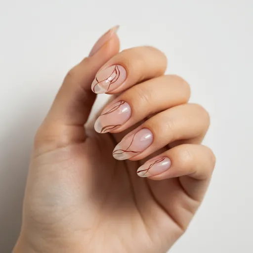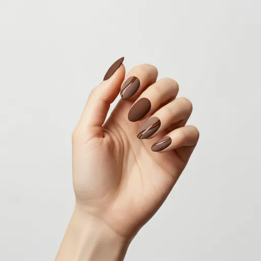This look features thin mocha lines on a sheer or nude base. The clean design is simple and modern, perfect for minimal nail lovers. It’s quick to create and works on any nail length.