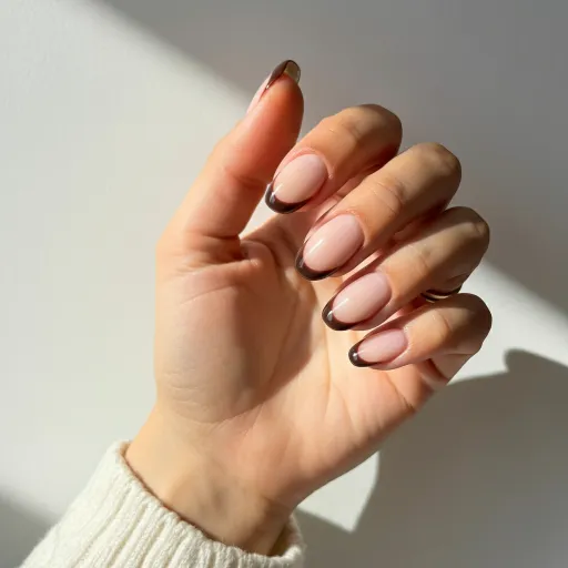 This design outlines the nail edges with mocha polish for a soft frame effect. It’s simple, stylish, and perfect for a modern look.