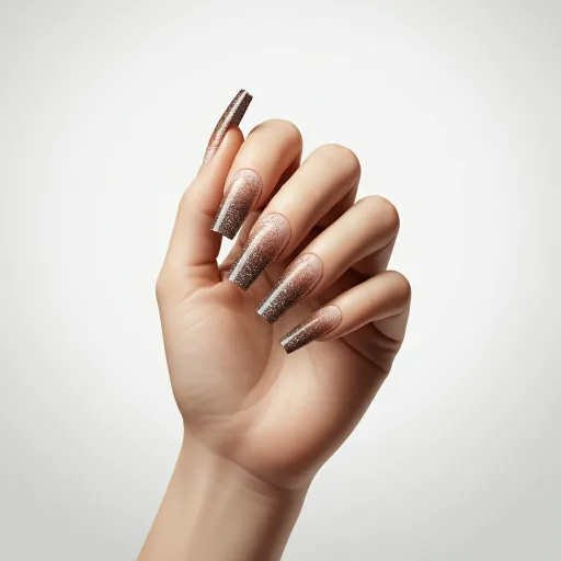 This design features a soft gradient of fine glitter fading from the base. It’s subtle, sparkly, and perfect for events or everyday shimmer.