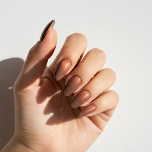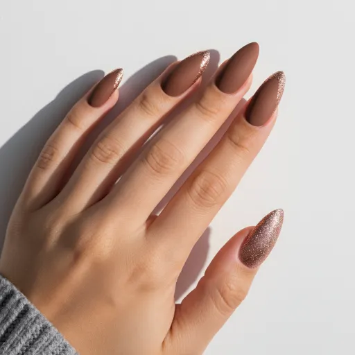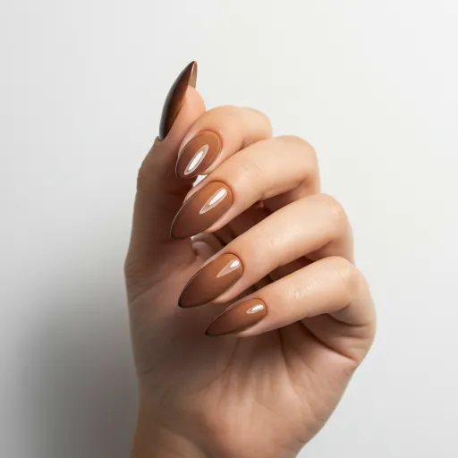 Soft almond nails in warm mocha shades feel cozy and clean. This look is trending for its simplicity and easy upkeep. Perfect for anyone who wants stylish nails without the length.