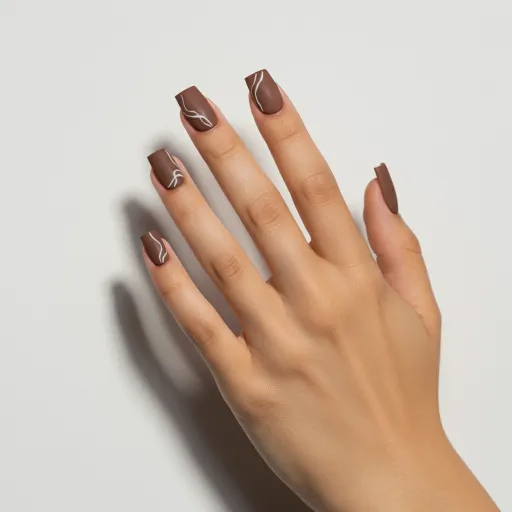 Creamy swirls add movement and style to your mocha base. This design is perfect for those who love artsy nail trends.