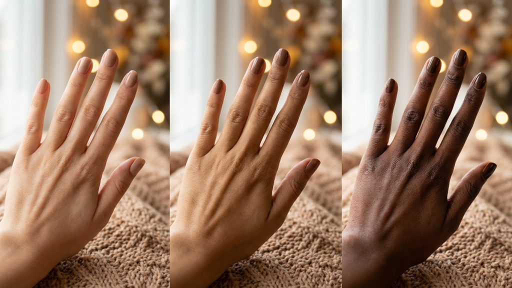 Another mistake is focusing only on skin surface color. Skin tone (light, medium, dark) is different from undertone (warm, cool, neutral). Also, comparing to trendy nail swatches without considering the polish base can mislead you. Look for the underlying hue—yellow/golden vs. pink/blue—to choose mocha shades that truly match. For clinical clarity on skin color vs. undertone, I link to explanatory material from dermatology sources like Mayo Clinic.