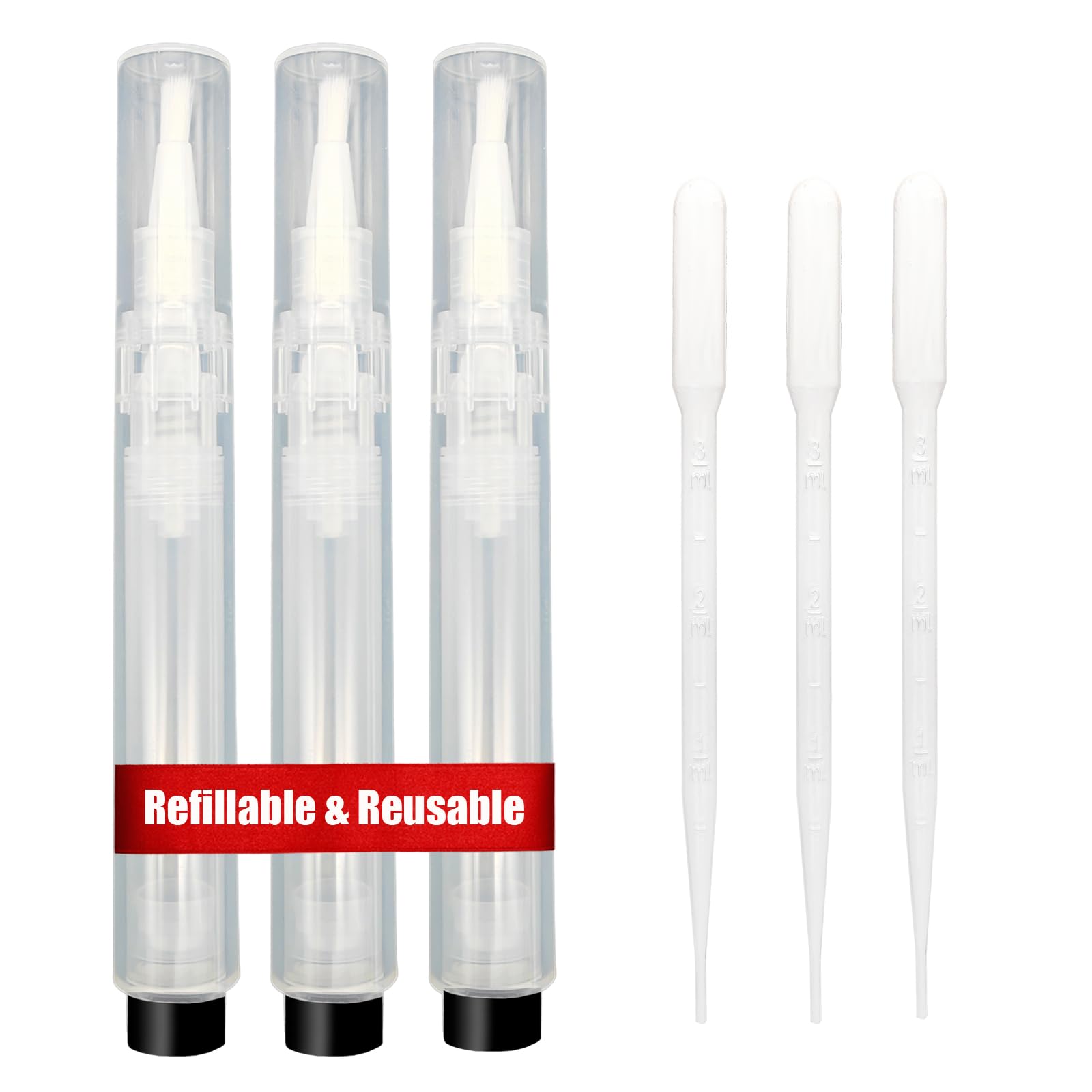 The pens are made from plastic but feel sturdy enough for daily use. They don’t leak, which is helpful if you toss them into your bag. Just remember to keep the cap on after each use to protect the brush and prevent drying. Overall, these pens work well as disposable, portable applicators for nail oil and similar liquids.