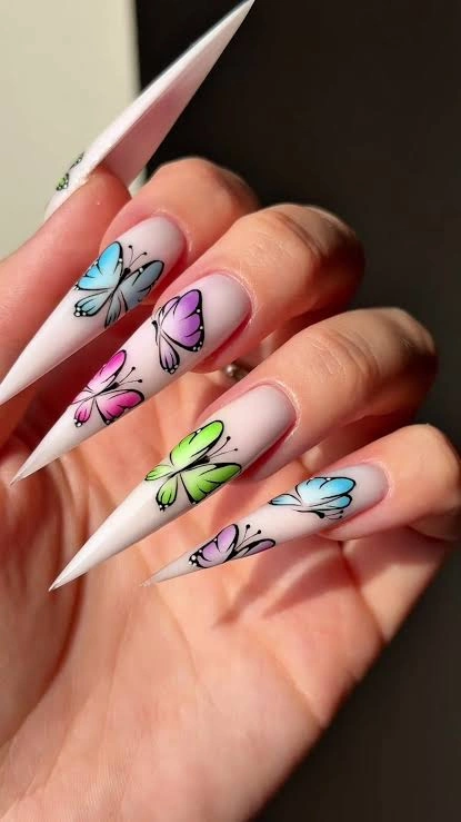 Colorful Butterfly Stiletto Nails