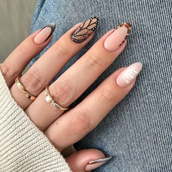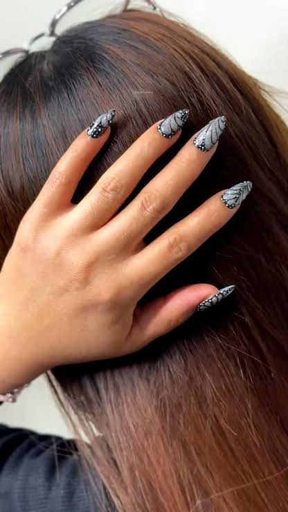Best Nail Shape: Stiletto nails enhance the butterfly wing effect beautifully.