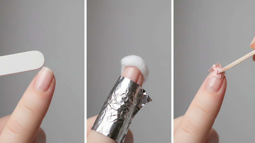 This method does not involve chemicals, making it suitable for those sensitive to acetone. However, it takes longer and needs precision to avoid over-filing. Using a soft buffer afterward helps restore a smooth finish to the nail surface.