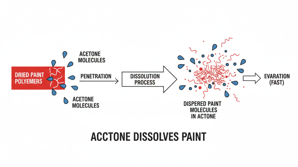 Acetone is volatile, meaning it evaporates quickly. This quality helps it loosen paint fast but can also damage sensitive surfaces. Because acetone is strong, it can harm plastics and some finishes if used carelessly. Knowing the type of solvent in a remover is important before applying it to any surface or paint.