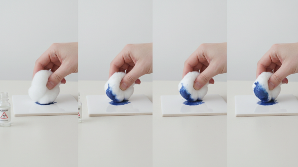 Once the paint is removed, some sticky or oily residue may remain. Wipe the area with a clean, damp cloth to remove leftover acetone and loosened paint. Avoid rubbing harshly as the surface may still be delicate after treatment.