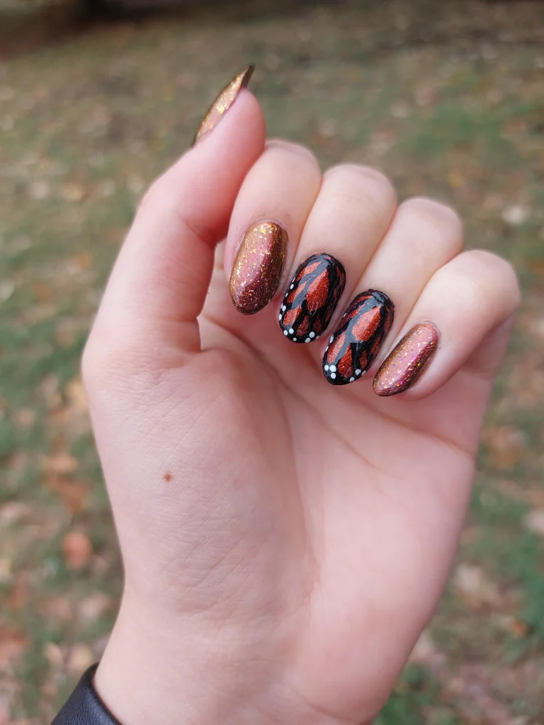 Autumn Monarch Glitter Nails
