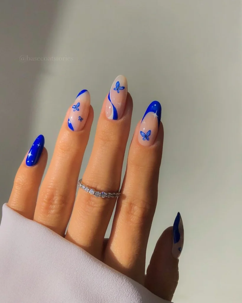 Cobalt Blue Butterfly Nails