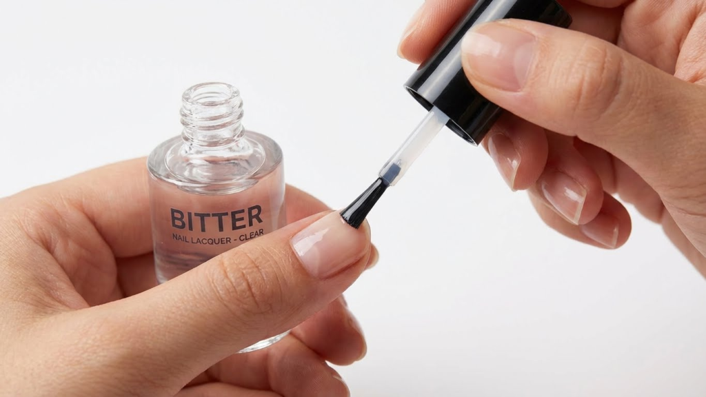 The bitterness acts as a quick reminder every time nails approach the mouth. This can interrupt automatic biting habits and build awareness of the behavior.