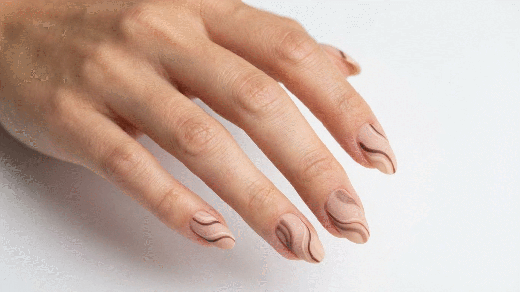 This minimalist design uses thin, creamy lines over a mocha base. It’s simple, neat, and perfect for anyone who loves understated nail art. The lines add soft detail without clutter.