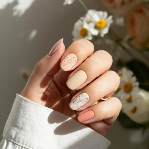 Soft petals painted on neutral polish create an elegant, delicate look. These nails feel romantic and timeless, perfect for slow, sunny days and soft outfits.