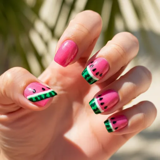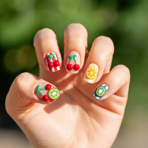Fruity summer nails with watermelon designs, citrus accents, and bright seasonal colors.