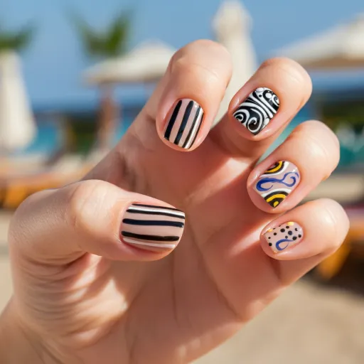 Gel nails, dip powder, and short square shapes stay chip-free longer and handle sand, water, and sunscreen better.
